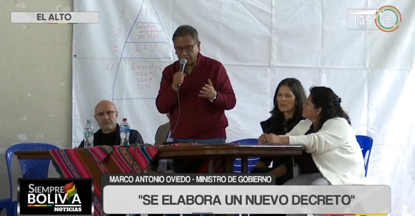 Desde el Ejecutivo se explicó que se anularán los artículos cuestionados, pero se preservará el núcleo económico del decreto. “Mantenemos la parte económica del decreto, el resto lo anulamos”, se indicó, señalando además que “las medidas de presión y los bloqueos deben levantarse de manera inmediata, porque están perjudicando al país”. También se remarcó que “no podemos dejar sin normativa al Estado boliviano” y que se trabajará en decretos paralelos para evitar un vacío legal.