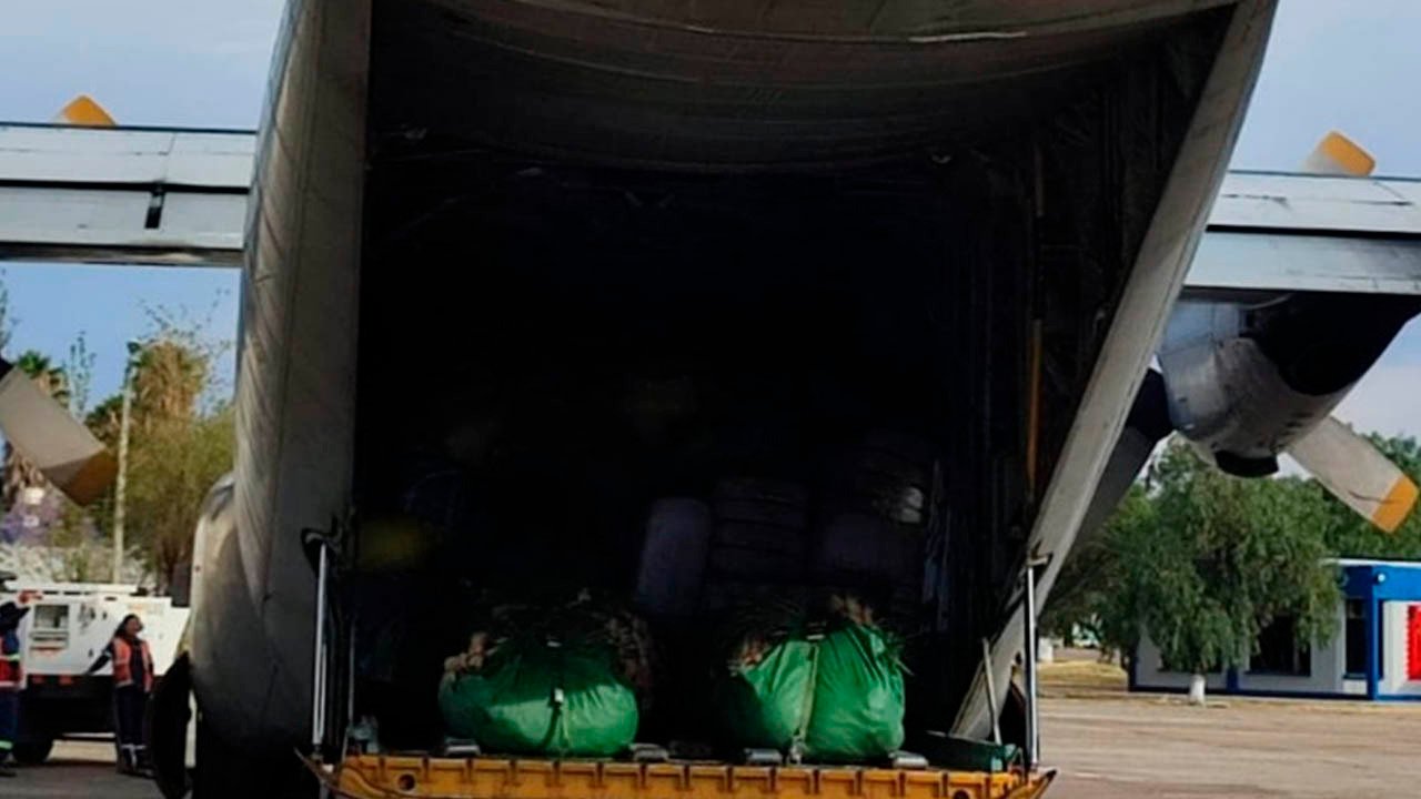 En las últimas horas, la Fuerza Aérea Boliviana (FAB) trasladó alrededor de 12 toneladas en un avión Hércules C130.