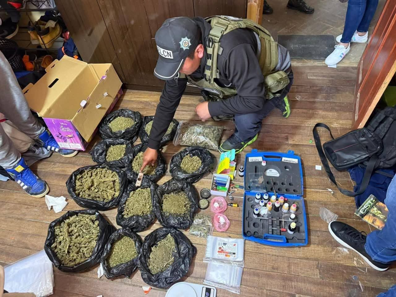 Tras las pruebas de campo realizadas en el lugar, ambas sustancias arrojaron resultado positivo (+) para marihuana y clorhidrato de cocaína, lo que permitió confirmar la presencia de drogas ilegales en la vivienda.
