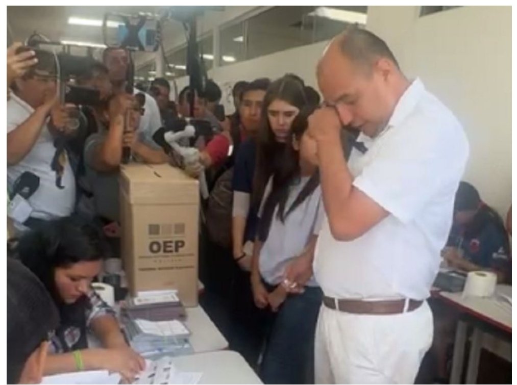Un candidato se emocionó hasta las lágrimas al emitir su voto y la demora provocó la molestia de los electores que esperaban en la fila. Ocurrió en el recinto electoral del colegio Ovidio Santiesteban de la ciudad de Santa Cruz de la Sierra.