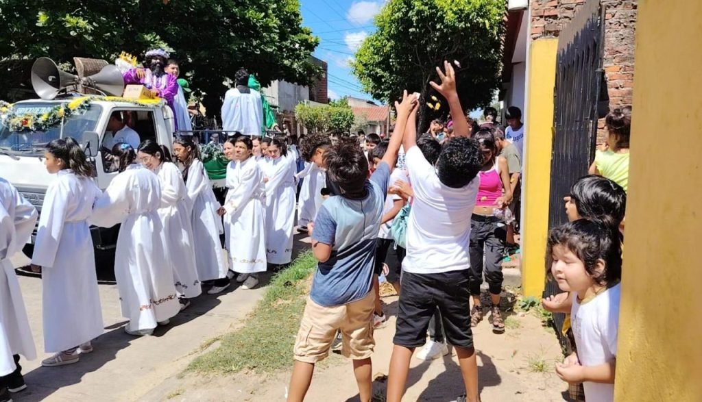 La Villa 1º de Mayo se llenó de alegría este fin de semana con la tradicional Caravana de Reyes, organizada por los sacerdotes de la Parroquia María Asunta y acompañada por la Federación Sindical de Trabajadores de la Prensa y Radio Actualidad 104.8 FM, en el marco de la campaña “Navidad de corazón”. La iniciativa buscó llevar un momento de felicidad a los niños de la ciudadela, quienes esperaban con entusiasmo la llegada de los Reyes Magos.