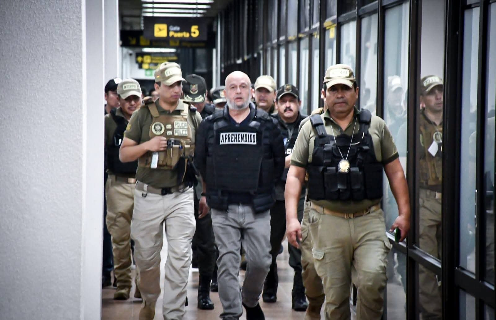 Murillo descendió del avión esposado, con chaleco de aprehendido y una actitud sonriente. Fue inmediatamente aprehendido por efectivos de la Policía Boliviana y permanece detenido en celdas del mismo aeropuerto, a la espera de su traslado a la ciudad de La Paz.