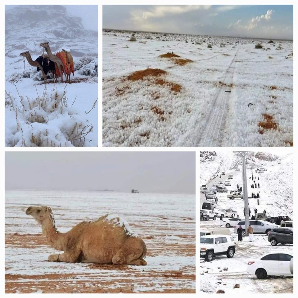 La región de Al-Jawf es conocida por su clima árido y extremas temperaturas que oscilan entre el calor sofocante del verano y las frías noches del desierto en invierno, aunque rara vez se registran nevadas. Sin embargo, en los últimos días, una tormenta sin precedentes trajo granizo y nieve a esta área, cubriendo el desierto por primera vez desde que existen registros meteorológicos en la zona.