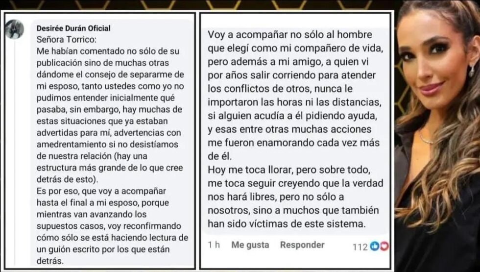 Durán respondió a los comentarios que la instaban a separarse de su esposo y calificó las acusaciones en su contra como producto de intereses externos.