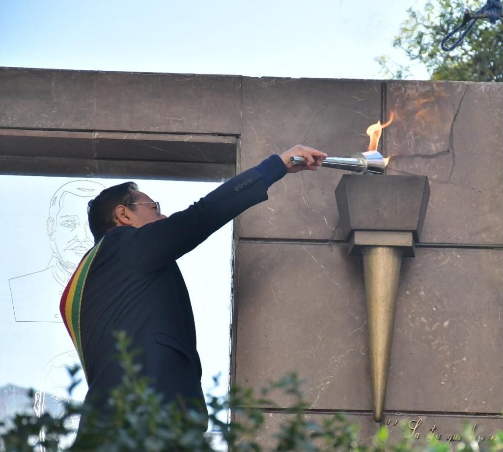 En un acto oficial realizado este miércoles, el presidente del Estado Plurinacional de Bolivia, Luis Arce Catacora, encabezó la ceremonia de izamiento de la bandera paceña y el encendido de la tradicional tea de Murillo, en el marco de los festejos por el aniversario de la gesta libertaria de La Paz.