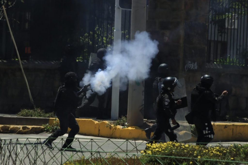 Un grupo de campesinos y cocaleros afines a Evo morales intentó tomar la sede de la Federación Sindical Única de Trabajadores Campesinos de Cochabamba (Fsutcc) pero fue gasificada por la Policía, que resguarda el inmueble.
