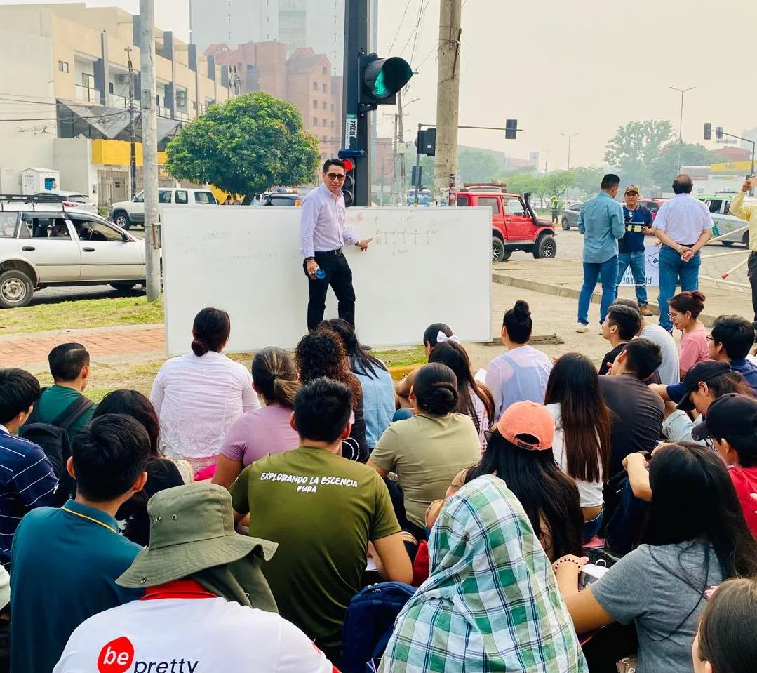 Este viernes, estudiantes y docentes de la Universidad Autónoma Gabriel René Moreno (Uagrm) tomaron la avenida Busch y el segundo anillo en la capital cruceña para pasar clases al aire libre, en señal de protesta por la falta de presupuesto que afecta a la universidad.