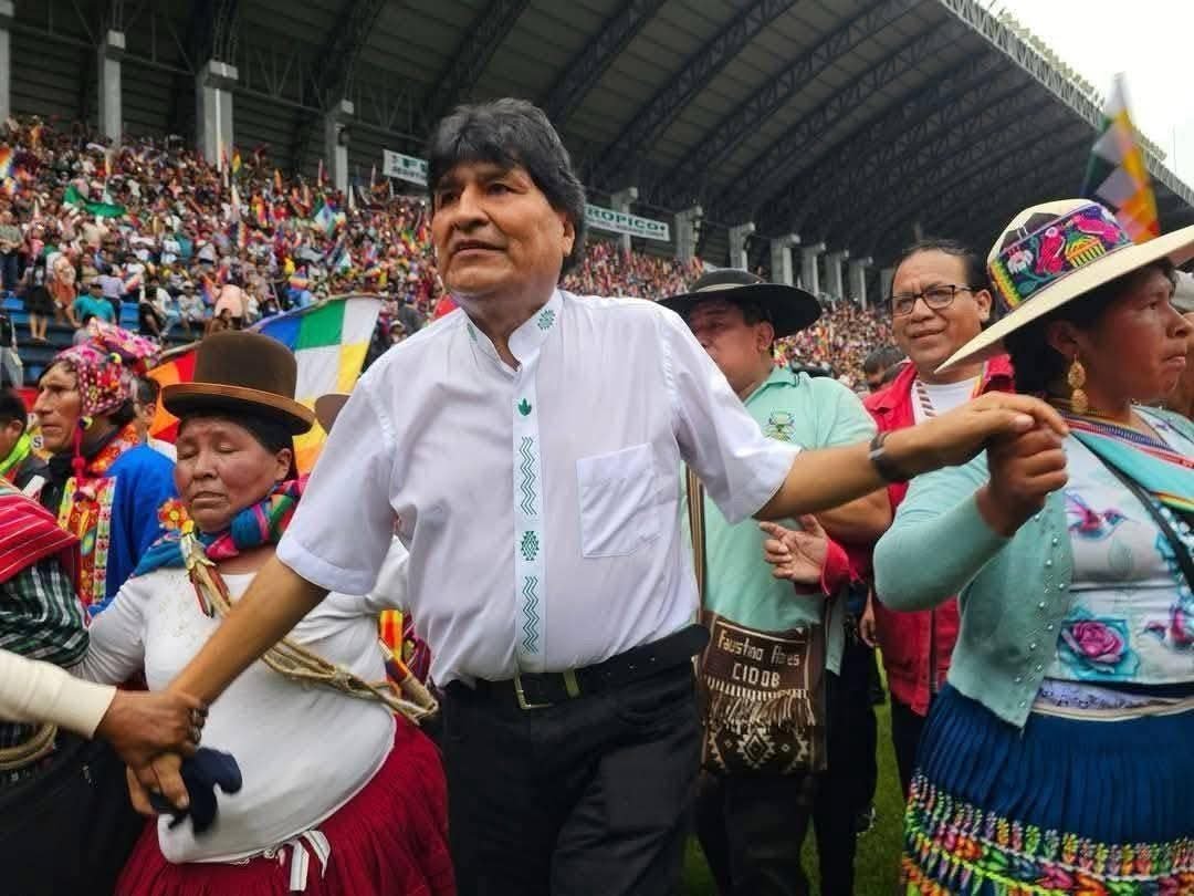 El evento contó con la asistencia de sindicatos provenientes de distintos puntos del país, que llenaron el estadio en señal de respaldo al expresidente. Morales, quien permanece aislado en el Chapare desde hace meses para evitar su captura, insiste en su candidatura para las elecciones de agosto, pese a estar inhabilitado constitucionalmente.