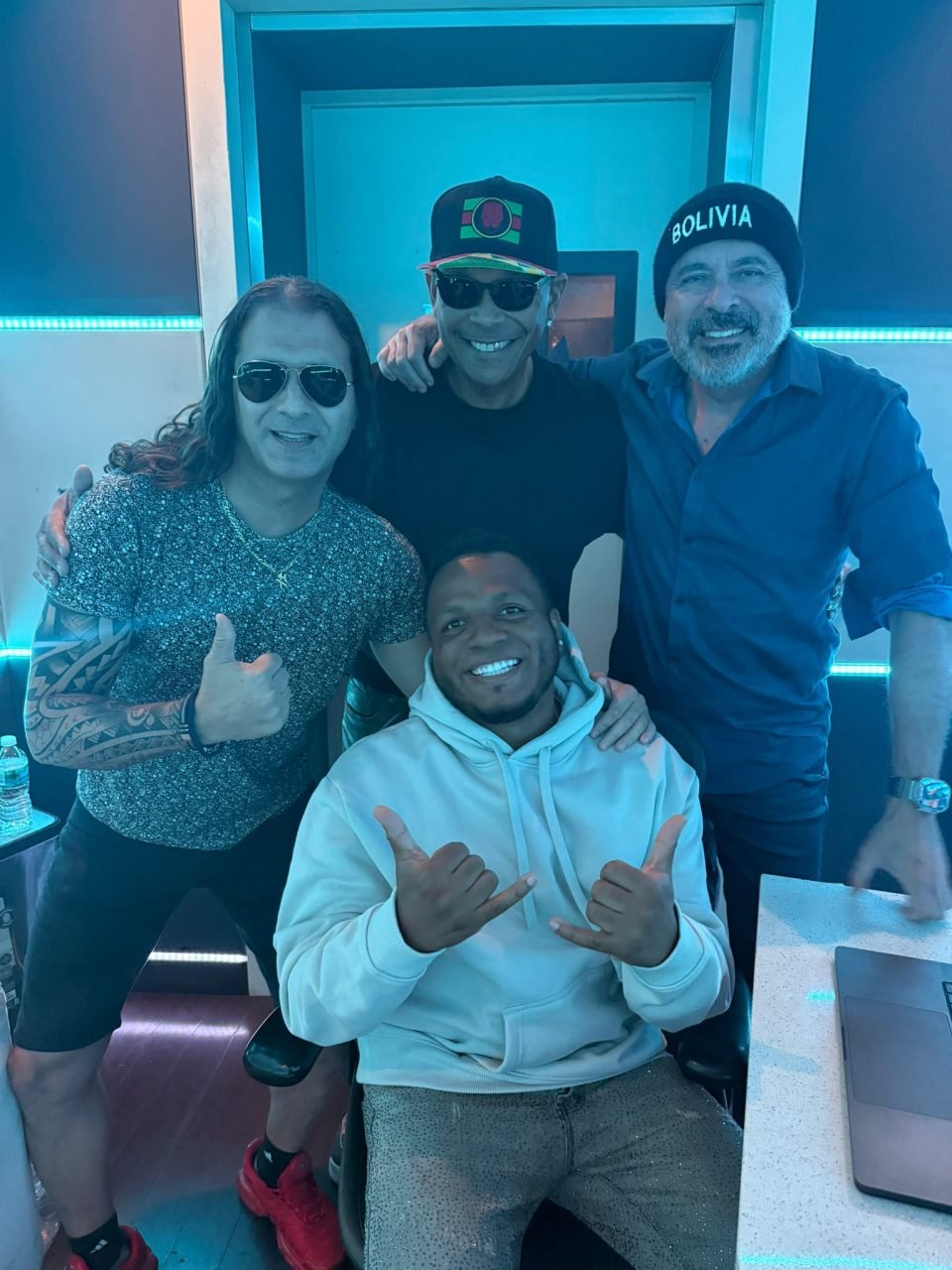 Zambrana se reunió nada menos que con Charly Sosa, la voz original de La Mayonesa, Gaby Brown, el timón vocal detrás del clásico El Meneito, y Saga White Black, productor de Nicky Jam y múltiple ganador del Grammy.