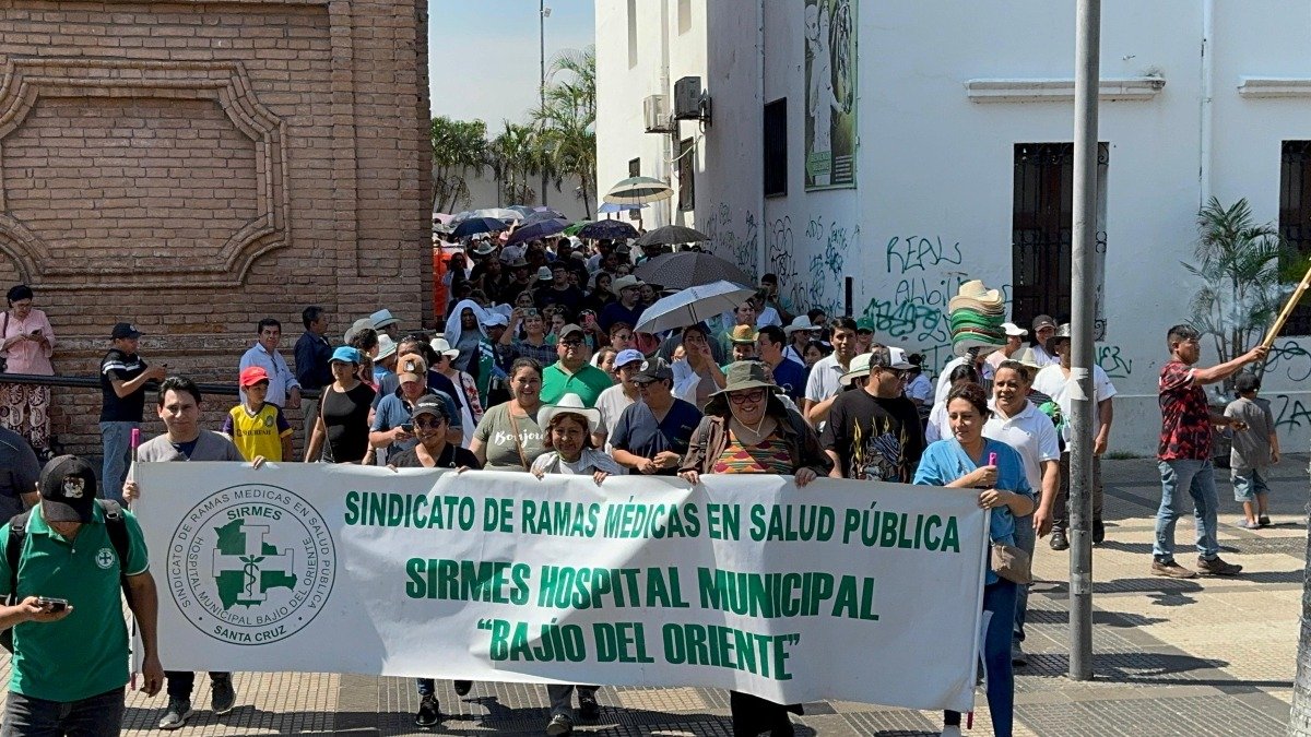 Médicos de Fesirmes alzan su voz en la plaza 24 de Septiembre. Con un mitin de protesta, los galenos exigen a la Alcaldía y a la Gobernación el pago inmediato de salarios atrasados y la recontratación del 100% del personal. Aseguran que la crisis afecta gravemente la atención en salud y piden soluciones urgentes.