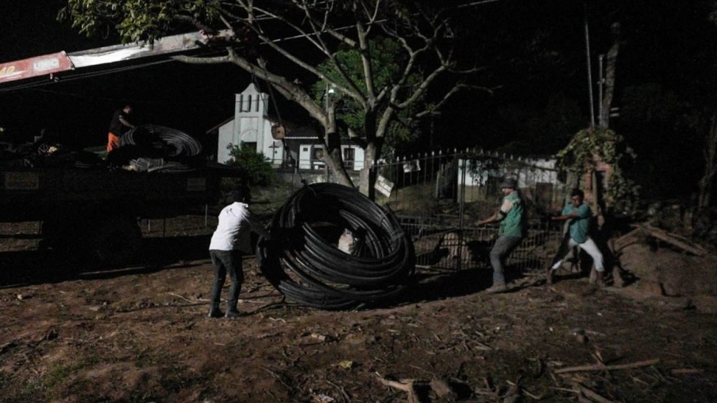 El Servicio de Recursos Hídricos de la Gobernación, a través de su director Percy Antelo, entregó este martes 1.000 metros de politubos en la comunidad de Achiras, municipio de Samaipata, para garantizar el suministro temporal de agua a 27 familias afectadas por las recientes inundaciones. El sistema cubrirá desde la escuela hasta la cancha principal de la localidad.