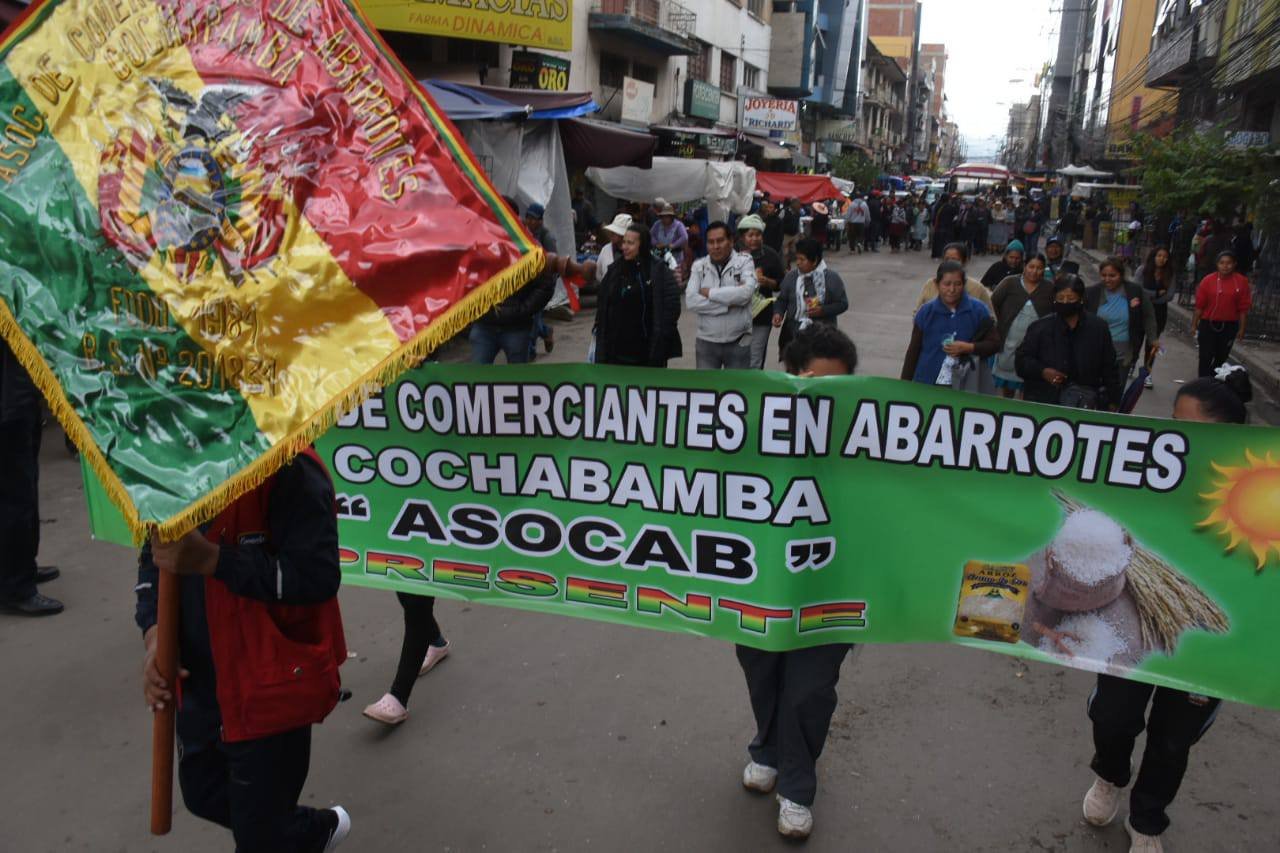 Gremiales y otros sectores marchan este lunes en Cochabamba contra la disposición séptima del Presupuesto General del Estado (PGE) que avala el decomiso de productos en casos de especulación y contrabando.