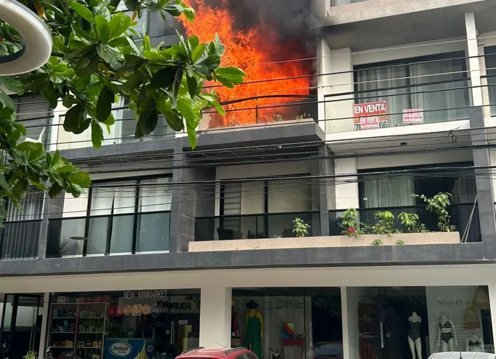 Cerca de las 07:30 de este jueves se produjo un incendio en el tercer piso de un edificio ubicado en la zona de Equipetrol, en el tercer anillo externo de la avenida San Martín, de la capital cruceña.