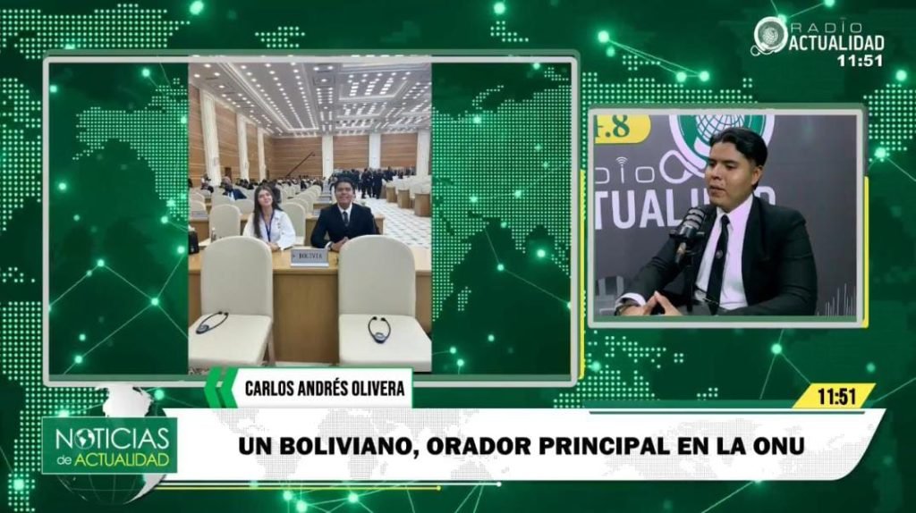 Carlos Andrés Olivera Caballero, un joven de 22 años que cursa el tercer año de Derecho en la Universidad Autónoma Gabriel René Moreno, ha sido invitado por la UNESCO y el Gobierno de China para representar a Bolivia en el Foro Internacional de la Juventud 2025, que se desarrollará del 16 al 22 de noviembre en Changsha, provincia de Hunan.