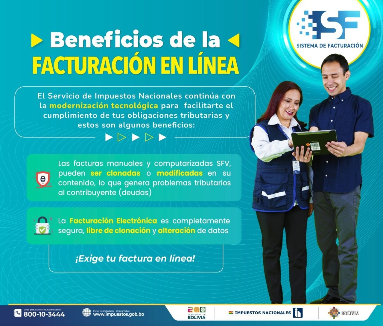Gracias a su integración en tiempo real con los sistemas digitales del SIN, cada factura electrónica es sometida a un proceso automático de validación en línea, lo que impide su duplicación o alteración.