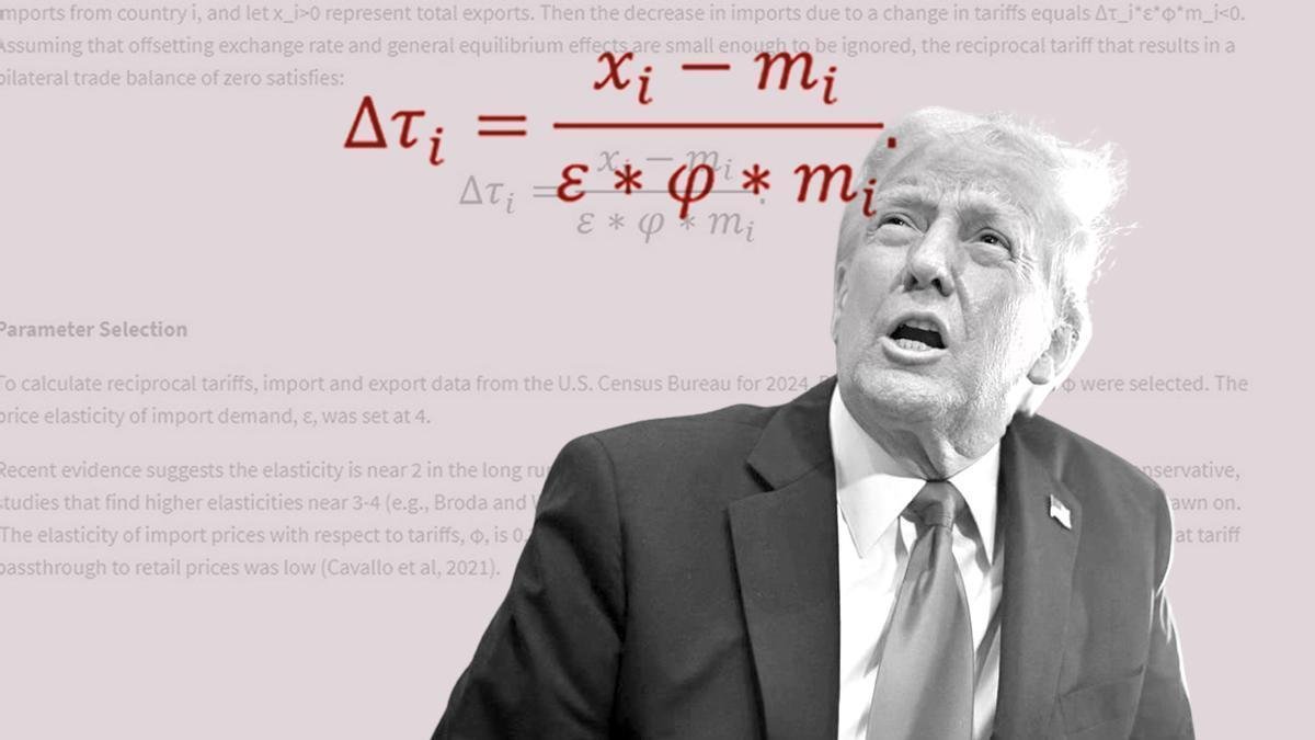 La fórmula de Trump incluía otros dos parámetros: la elasticidad-precio de la demanda de importaciones y la elasticidad de los precios de importación con respecto a los aranceles. Estos parámetros se fijaron en cifras que, en la práctica, se anulaban entre sí y equivalían a multiplicar por uno.