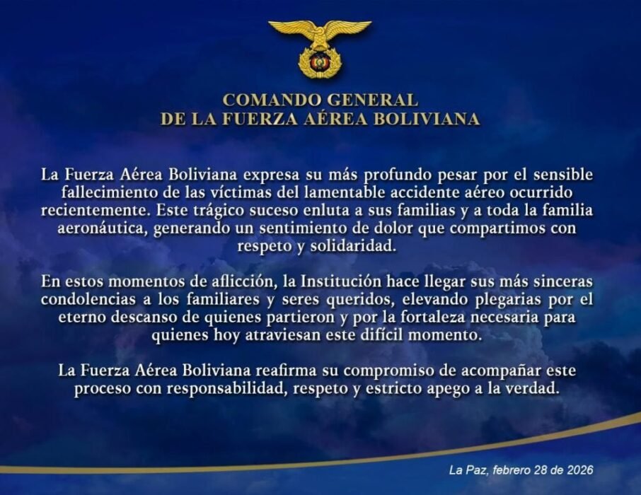 “La Fuerza Aérea Boliviana reafirma su compromiso de acompañar este proceso con responsabilidad, respeto y estricto apego a la verdad”, concluye el comunicado.