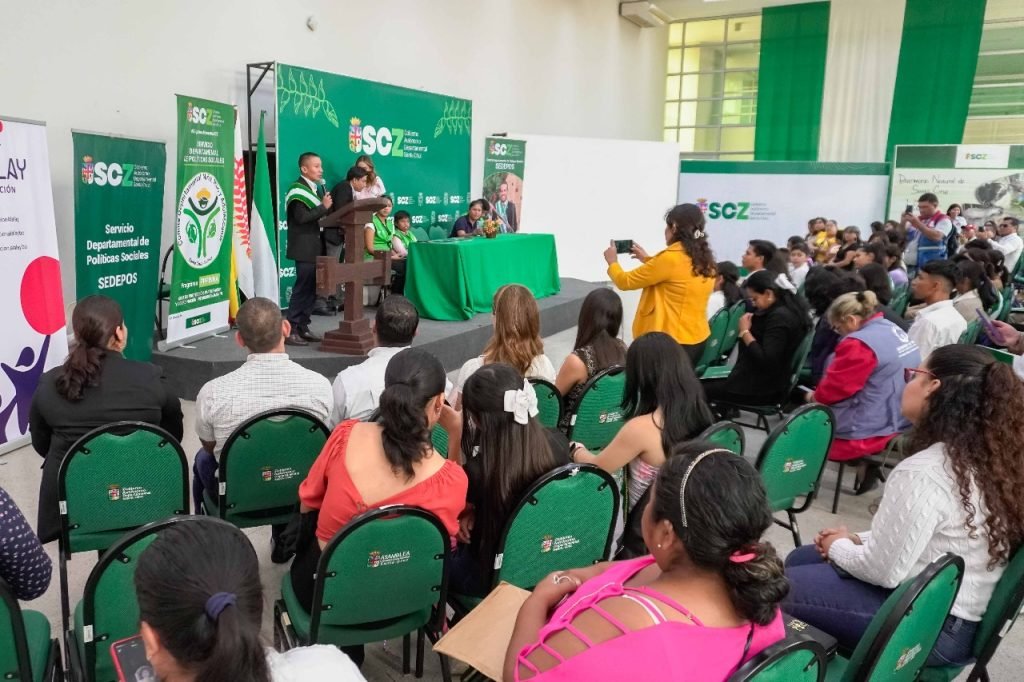 En la oportunidad, la Gobernación entregó becas de una universidad norteamericana para estudios online de carreras técnicas para las nuevas autoridades de los niños y adolescentes que representarán a Santa Cruz a nivel nacional e internacional en diferentes eventos.
