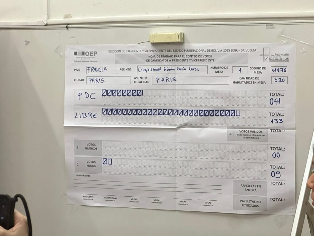 París, Francia – La comunidad boliviana residente en Francia mostró este domingo una clara preferencia por el partido LIBRE durante la jornada electoral en el Colegio Español Federico García Lorca, donde se habilitaron cuatro mesas para que los ciudadanos ejercieran su derecho al voto en el exterior.