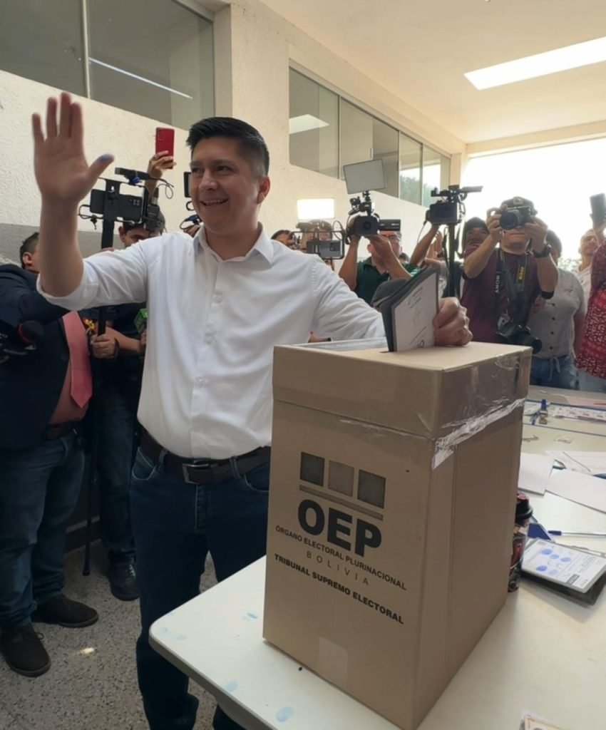 Juan Carlos Medrano, candidato a la vicepresidencia por la alianza APB-Súmate, emitió su voto este domingo en la Unidad Educativa 24 de Septiembre, en Santa Cruz. Tras sufragar, pidió a los bolivianos votar con libertad y rechazar el voto nulo, afirmando que el país necesita cerrar la etapa del socialismo y comenzar una nueva era.