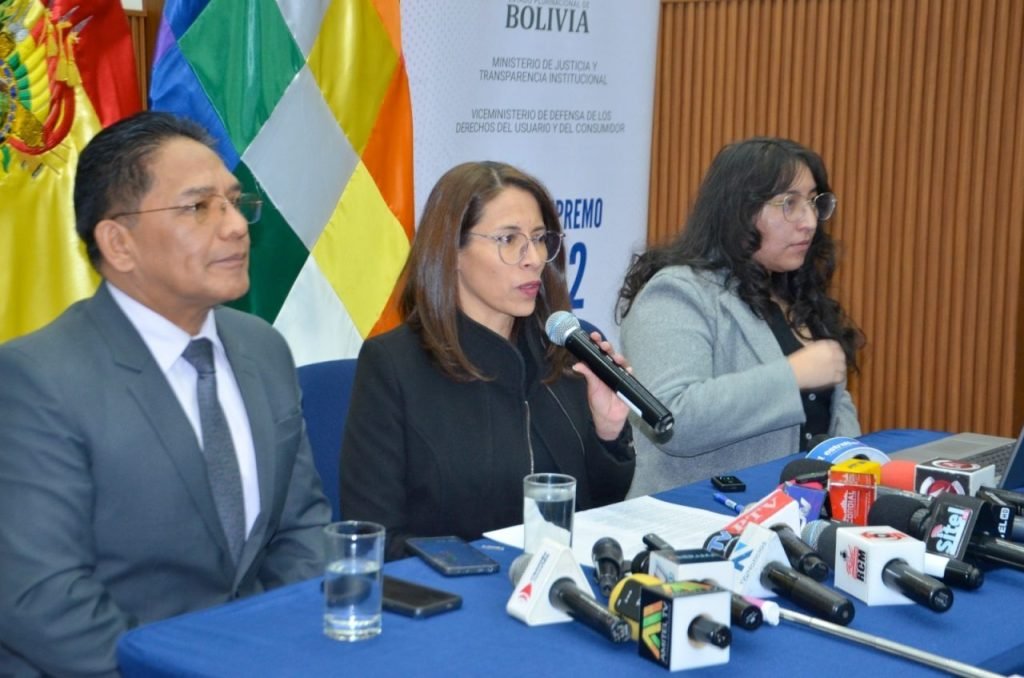 El acto contó con la participación de la ministra de Justicia y Transparencia Institucional, Jessica Saravia Atristain, y del viceministro de Defensa de los Derechos del Usuario y del Consumidor, Jorge Silva.
