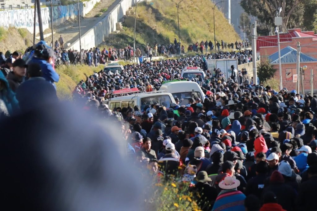 Los choferes del transporte público de La Paz marchan este miércoles desde la Ceja de El Alto hasta el centro de la ciudad sede de Gobierno para exigir a las autoridades que se normalice el suministro del combustibles.