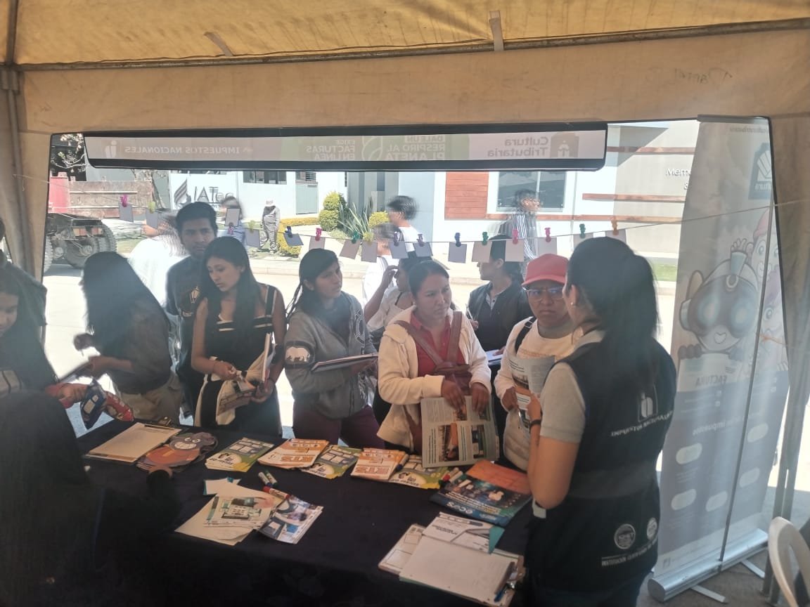 Impuestos Nacionales continúa con la organización de ferias de cultura tributaria, a nivel nacional, para socializar entre la población información sobre sus productos digitales, mediante el SIAT en Línea, y otros servicios gratuitos, que facilitan a los contribuyentes el cumplimiento de sus deberes formales con la Administración tributaria.