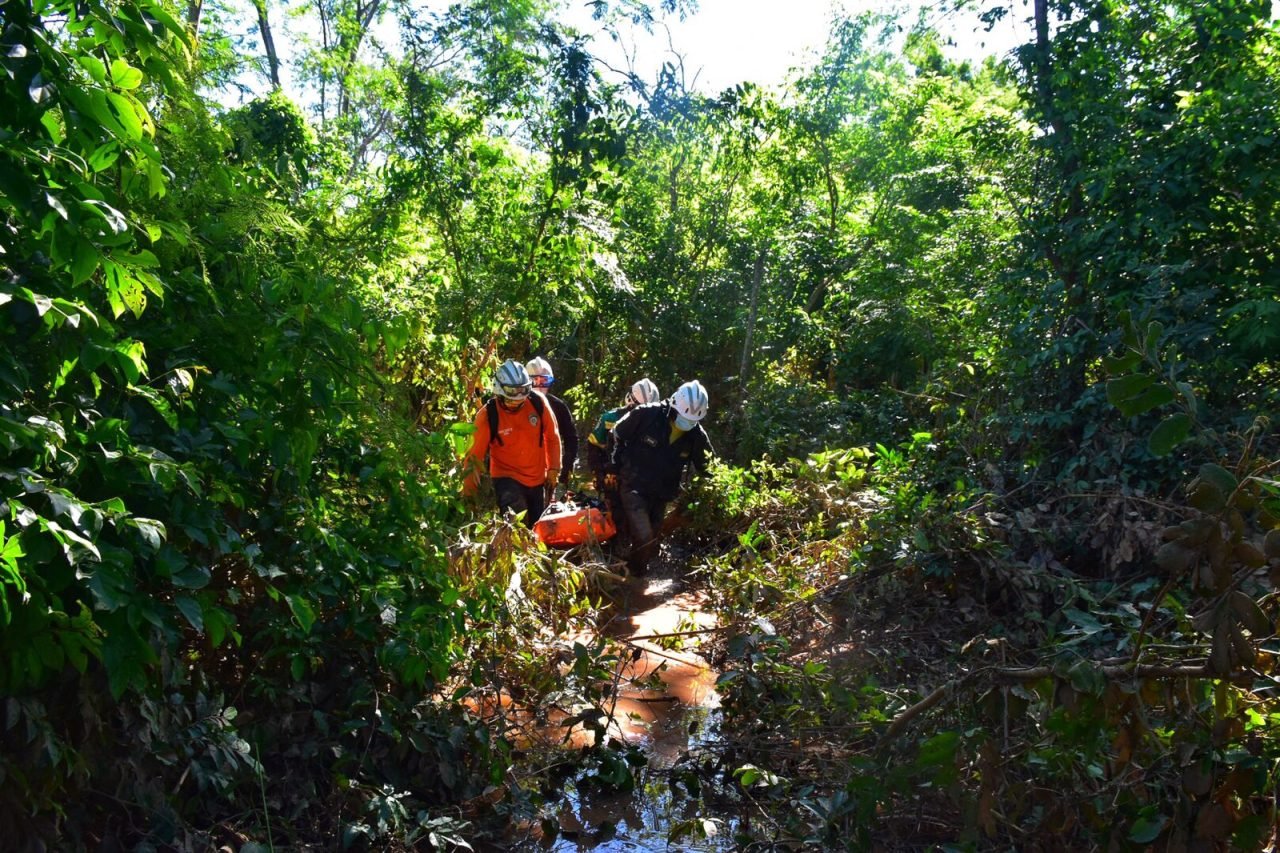 El operativo se desarrolló en una zona de difícil acceso, sin caminos habilitados, lo que obligó a la cuadrilla de rescate a abrir una senda entre matorrales y zonas de mazamorra para llegar hasta el punto exacto donde fue encontrado el cuerpo.
