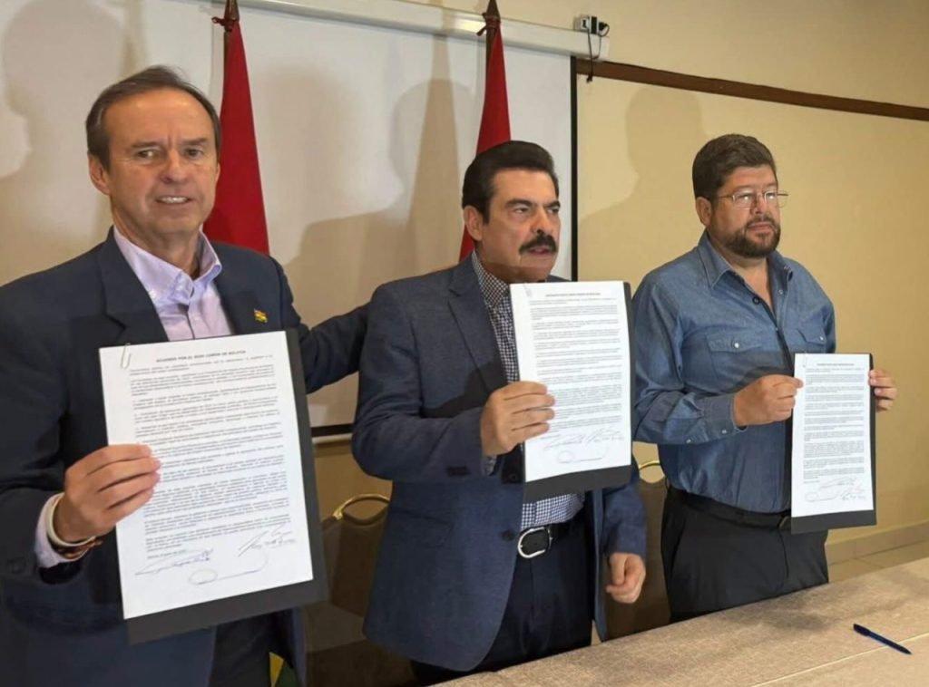 La firma del acuerdo tuvo lugar en Cochabamba, una de las regiones más afectadas por los bloqueos impulsados por sectores afines a Evo Morales, quien exige su habilitación como candidato pese a los cuestionamientos legales.