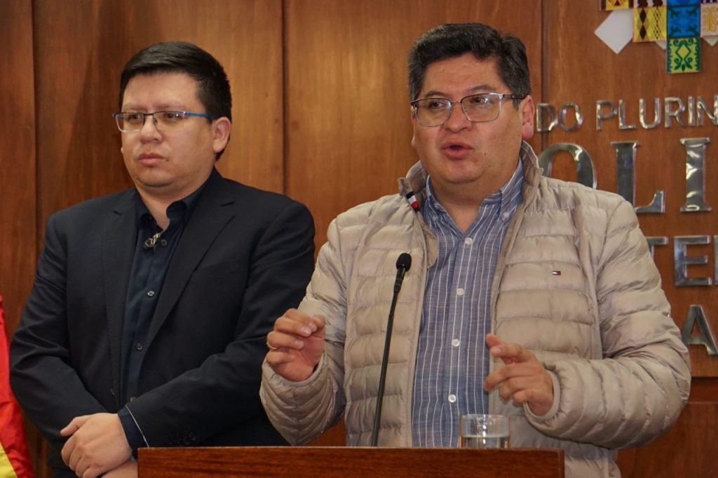 Los ministros de Economía, Marcelo Montenegro; y de Planificación, Sergio Cusicanqui, brindaron una conferencia de prensa conjunta donde cuestionaron que algunos legisladores le hayan “dado la espalda” al país al rechazar el proyecto de ley.