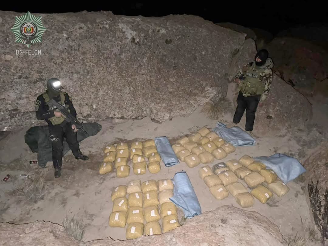 Efectivos policiales de la F.E.L.C.N. realizaron un patrullaje de prevención e interdicción al narcotráfico en el municipio de Quetena por inmediaciones de la zona fronteriza entre Bolivia y Chile. Durante la revisión del lugar, entre las rocas se encontró una carpa de color verde que ocultaba un yute celeste con 60 paquetes forrados de color beige que contenían una sustancia verduzca. Se realizó la prueba de campo dando resultado positivo (+) para Marihuana. El caso fue puesto a conocimiento del Ministerio Público.