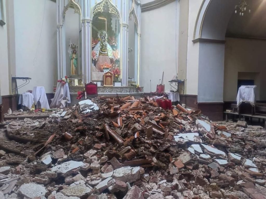 Media hora mas tarde escuchó un estruendo y cuando fue al templo todo estaba como envuelto en humo. Se trataba del polvo que desprendió la caída de parte del techo del lugar.
