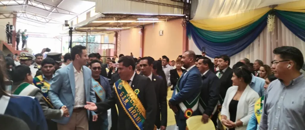 El vicepresidente del Estado, Edmand Lara, asistió este lunes a la sesión de honor por los 111 años del municipio de Arani, en Cochabamba, luego de sus recientes viajes internacionales, que incluyeron la participación en la COP30 en Brasil y la final de la Copa Sudamericana en Paraguay.